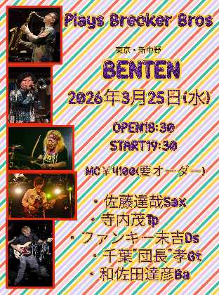 | 2026年3月25日(水) 新中野「BENTEN」Plays Brecker Bros. | ||